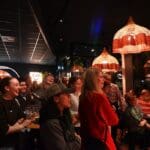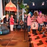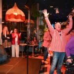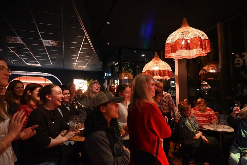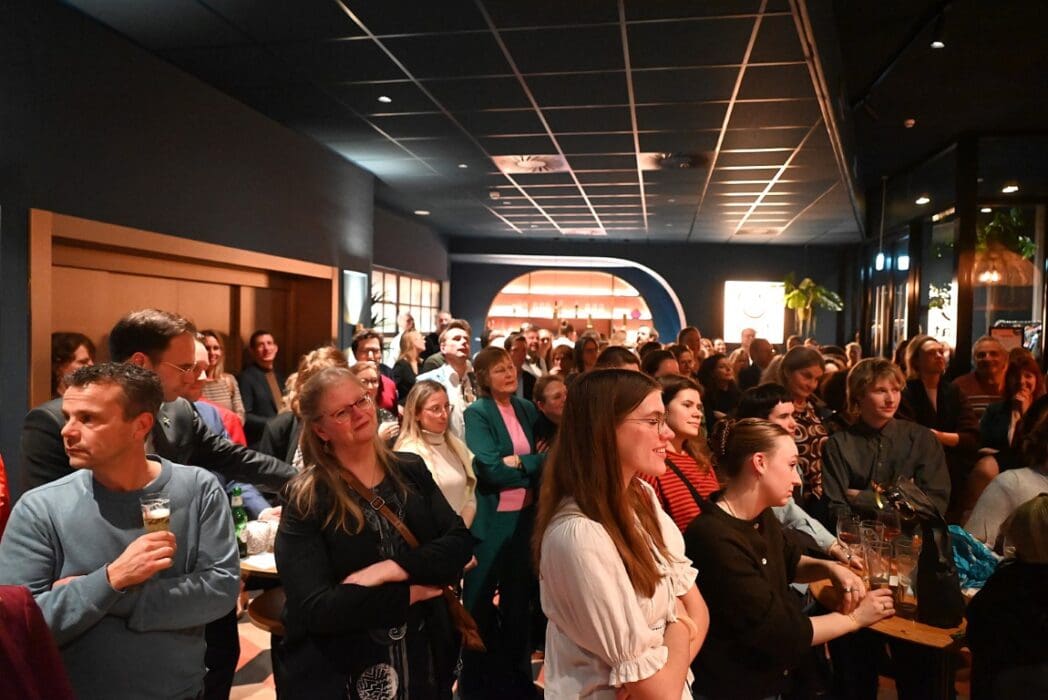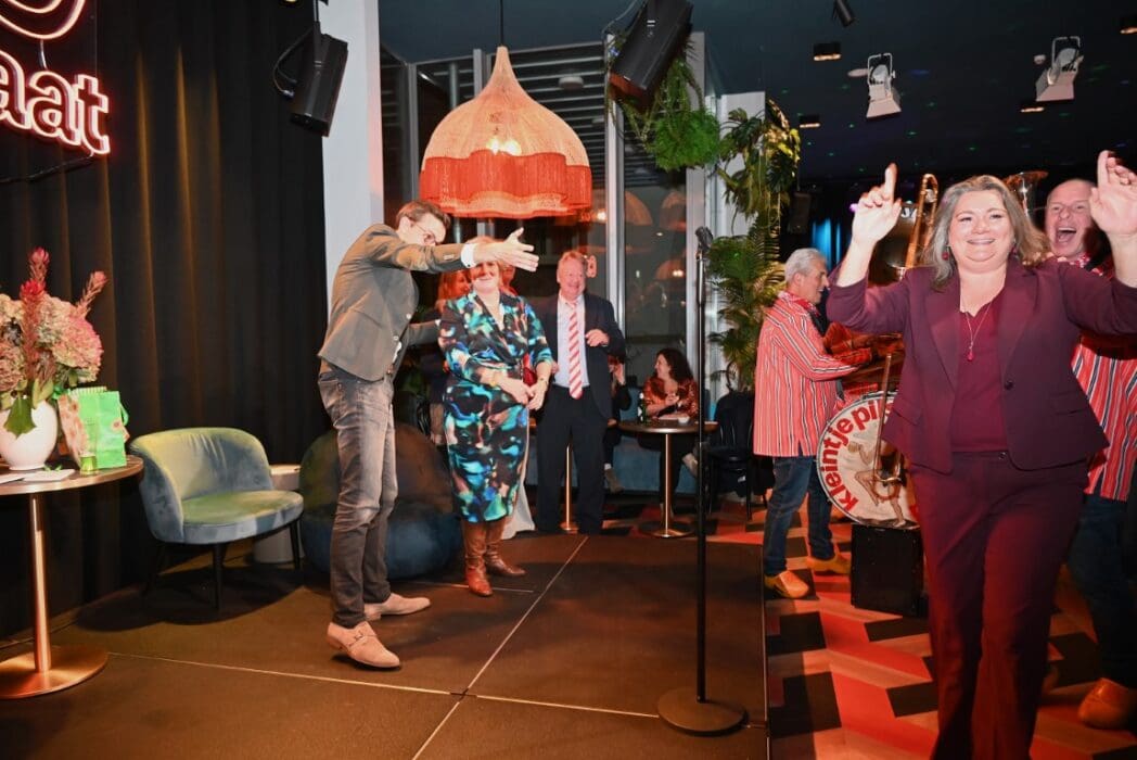 In een mum van tijd veranderde de zaal in een feestende menigte.