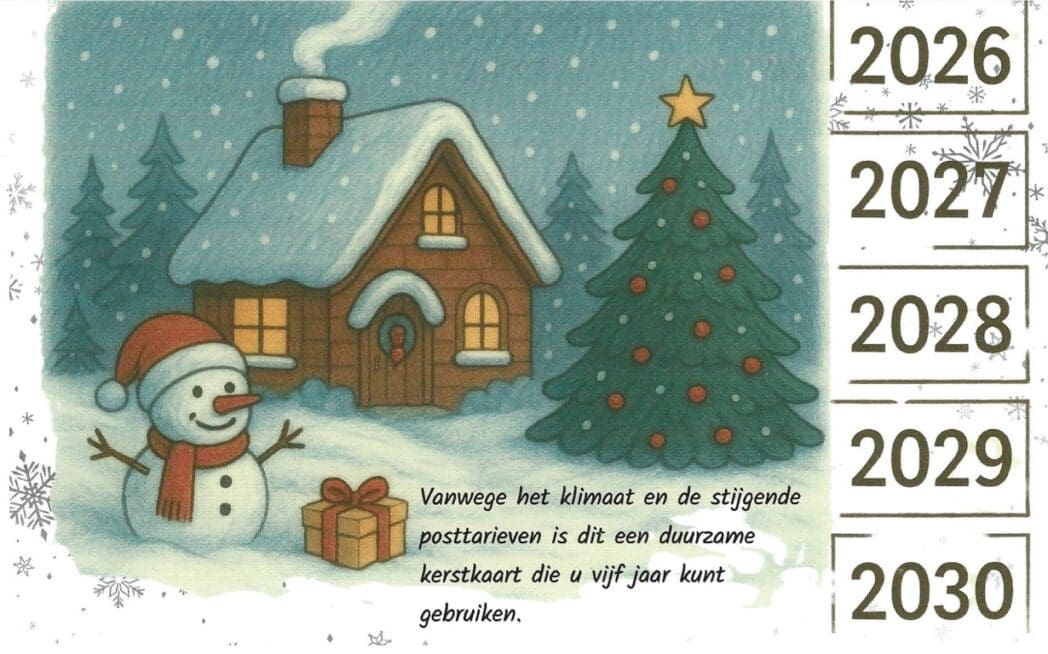 Ik vond het wél een reuze origineel idee om de kerstkaart 5 jaar ‘geldig’ te maken. Ik zal hem dan maar bewaren en volgend jaar wéér ophangen. 😉