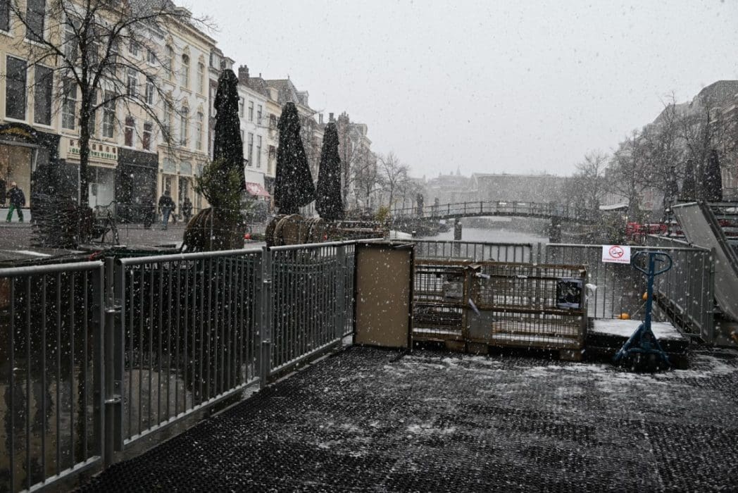Een maand lang hoopte ik dat het zou gaan sneeuwen omdat dat zo’n leuk winters sfeertje geeft rondom de ijsbaan. Geen sneeuw gezien, …………….tot een uur voor de baan definitief dicht ging.