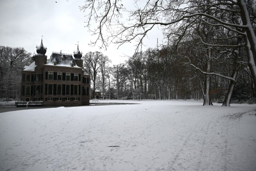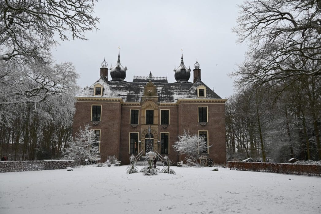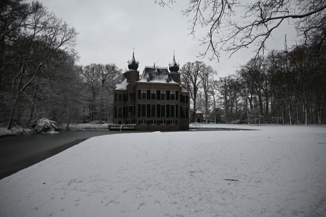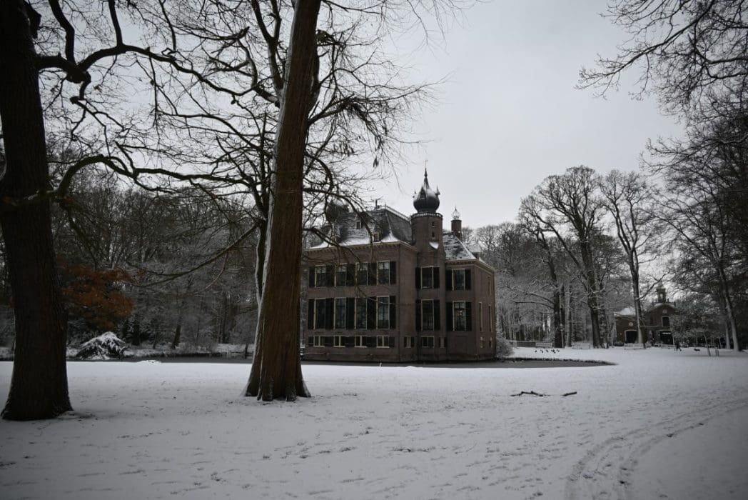 Het kasteel ligt er prachtig bij in de sneeuw.