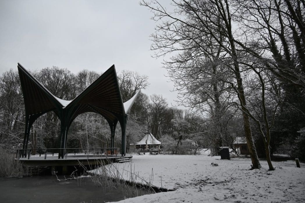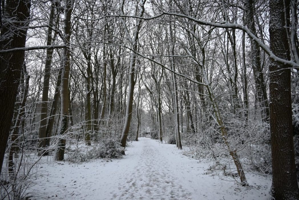 Eigenlijk zijn we niets meer gewend, een paar centimeter sneeuw en het hele land ligt plat, files. code oranje, geen vliegtuigen en geen treinen. Mochten we ooit in oorlog komen, dan hoeft de vijand alleen maar een sneeuwkanon mee te nemen en ze lopen zo door. Maar goed deze dag gaat de boeken in dat Nederland wit was en plat lag. Uiteraard ging ik op pad om wat foto’s te maken bij Kasteel Oud Poelgeest en De Leidse Hout.