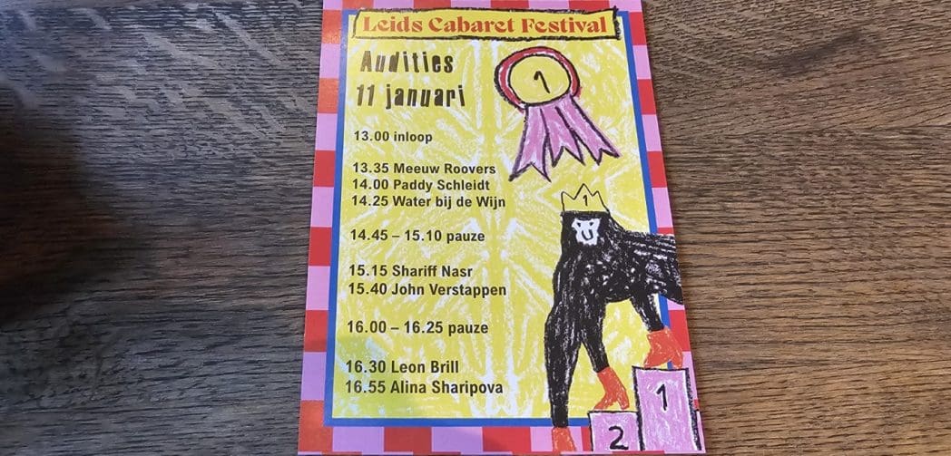 Vandaag was de tweede auditiemiddag voor het Leids Cabaret Festival 2026. Zoals ik gisteren ook al schreef, ik mag nog geen oordeel over de auditanten of hun programma geven. Vandaar een sfeerverslag en een voorstelrondje. Ook vandaag stond er al ruim voor 13.00 uur een lange rij wachtenden die precies wisten waar ze moesten zijn.
