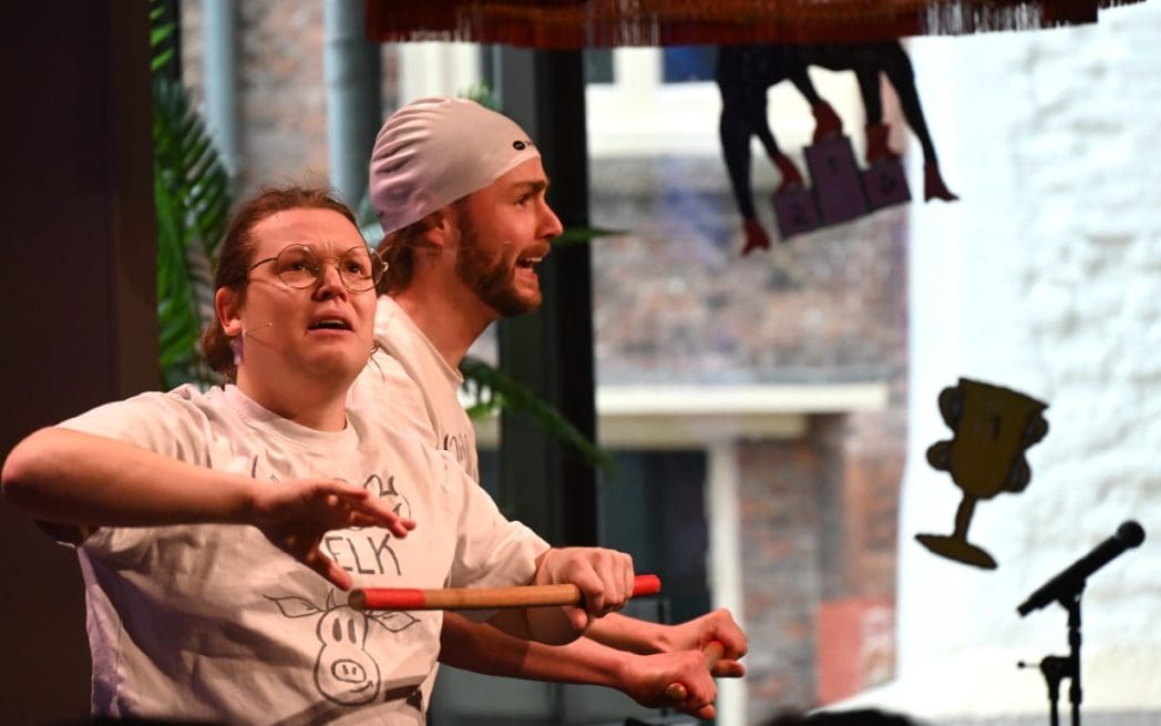 Het duo Water bij de Wijn komt uit België en doen al drie jaar aan cabaret. Het levert niets op vandaar dat zij een sponsor gevonden hebben.