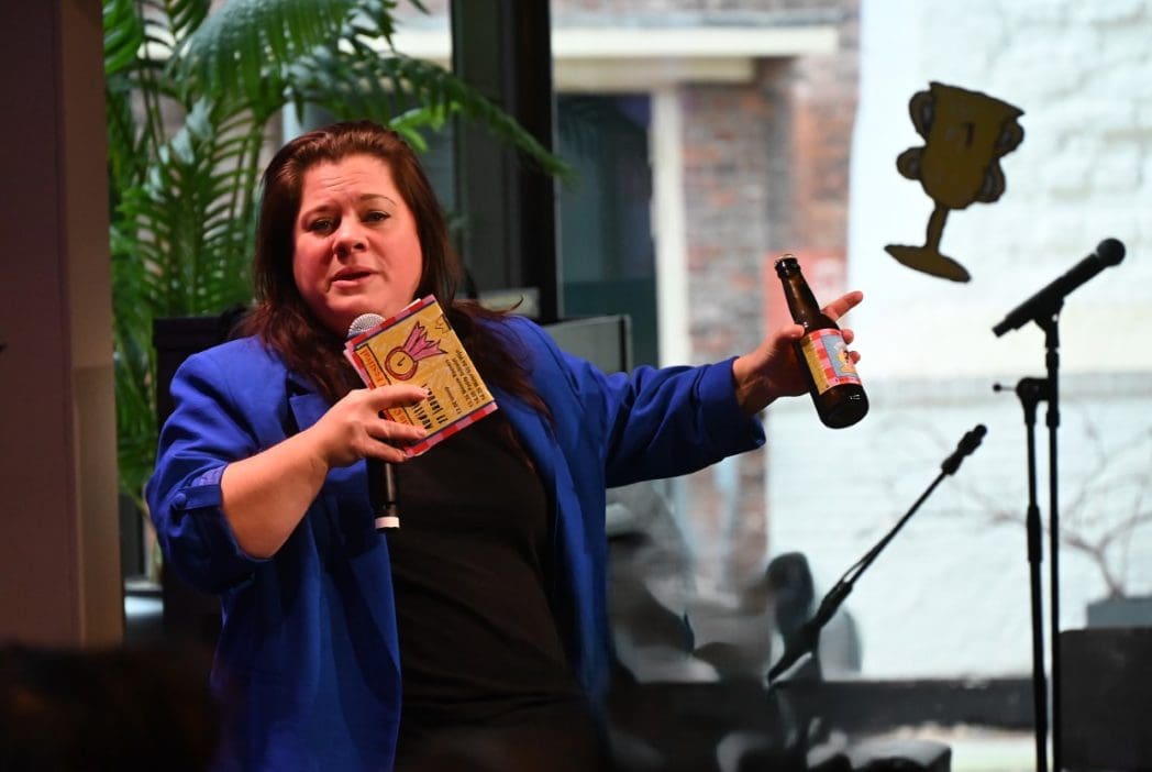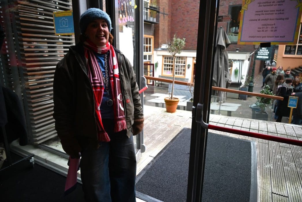 Berit mocht nog een paar biertjes uitdelen voor het publiek naar huis ging.