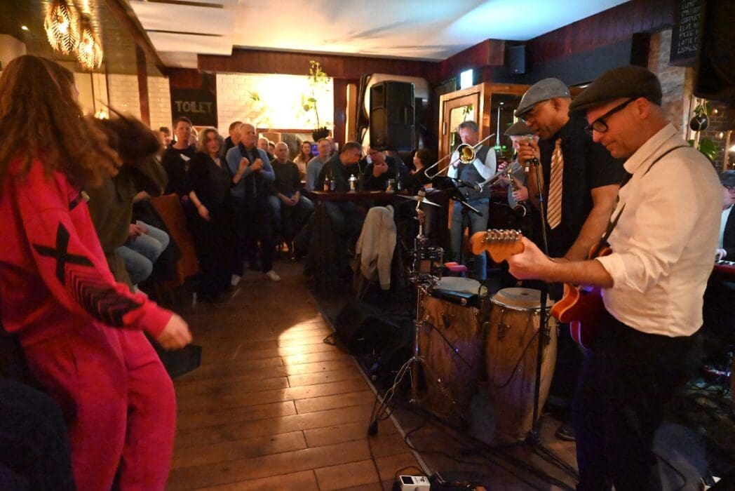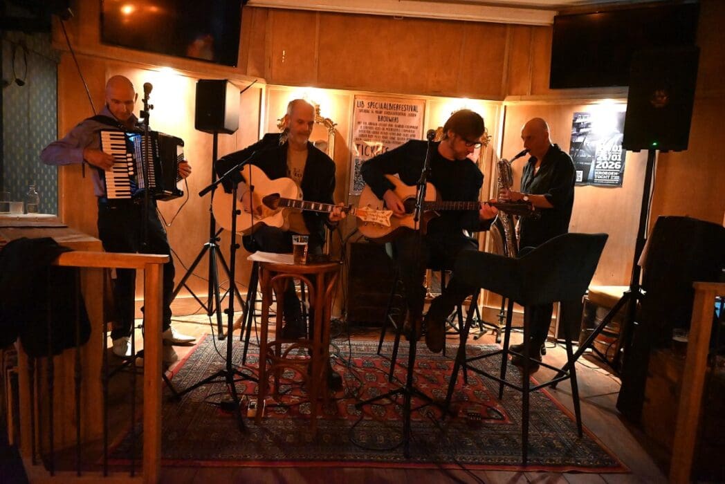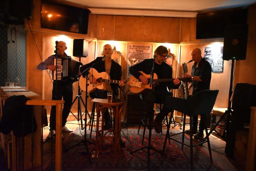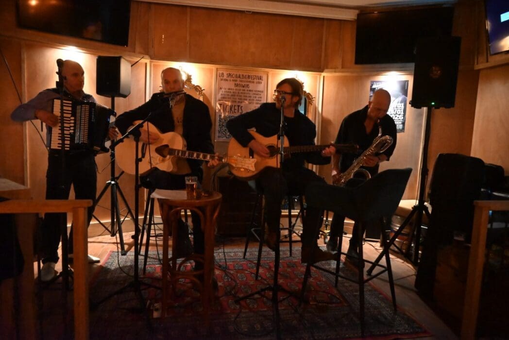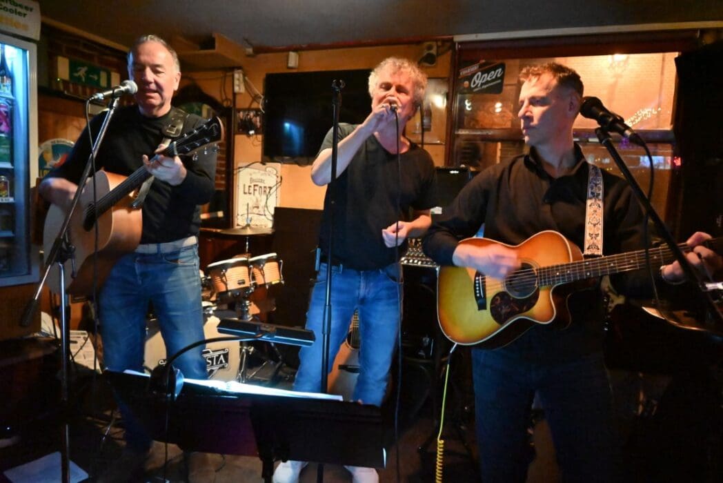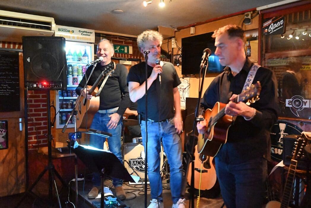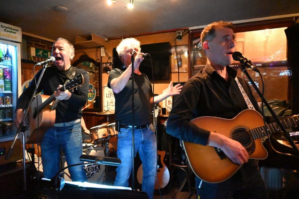 Lekker als drie kroegen bij elkaar liggen. Ik liep bij Grenare naar binnen bij de Cabbage Alley Band.