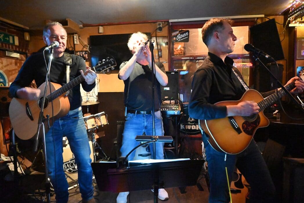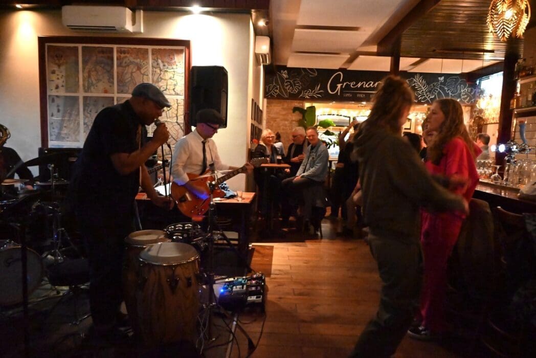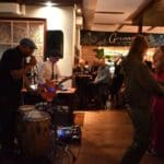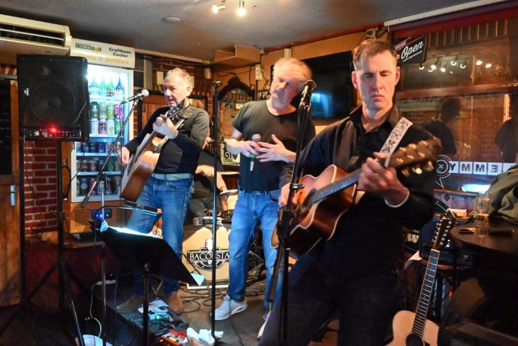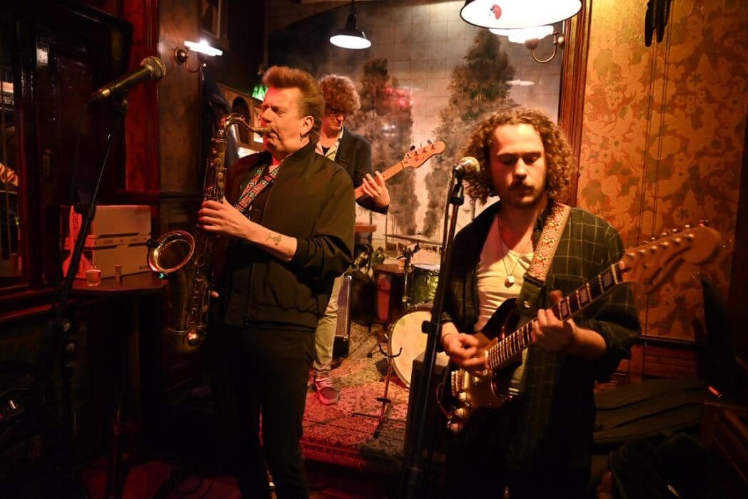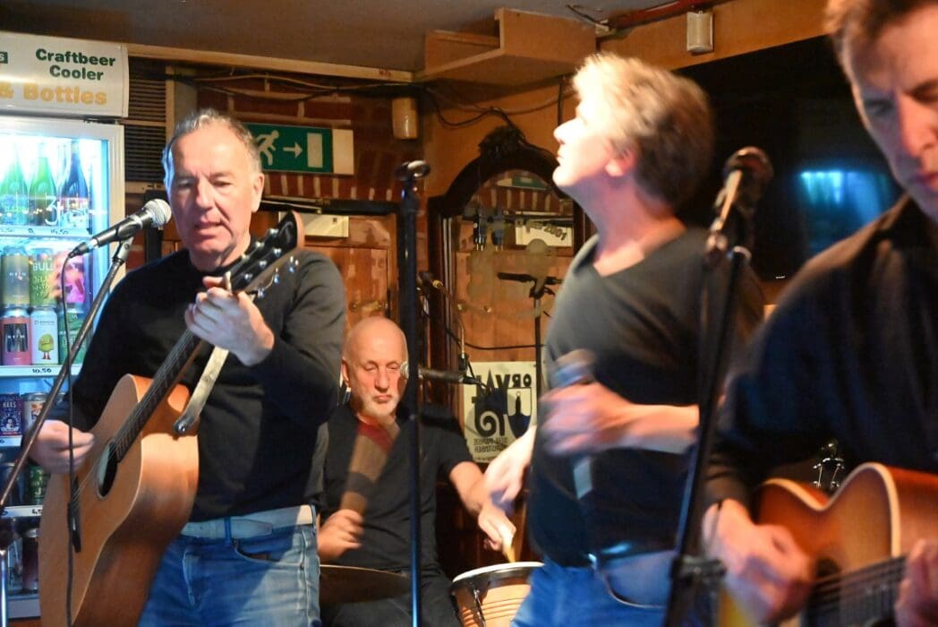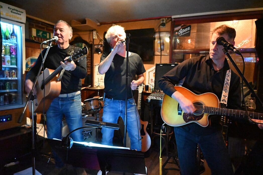 Lekker als drie kroegen bij elkaar liggen. Ik liep bij Grenare naar binnen bij de Cabbage Alley Band.