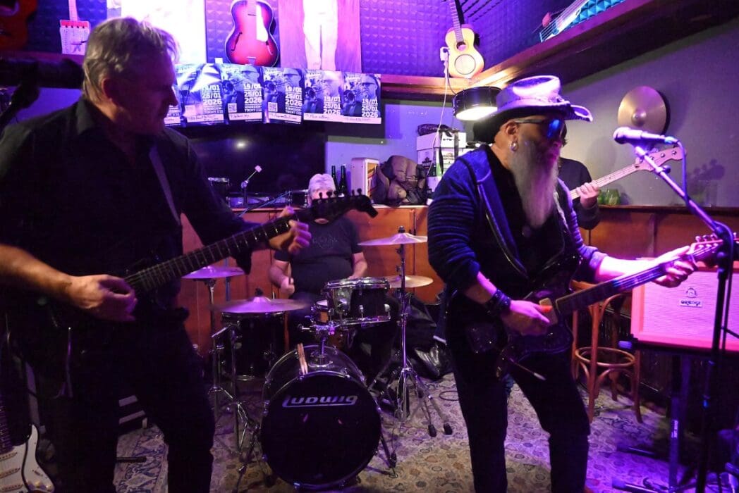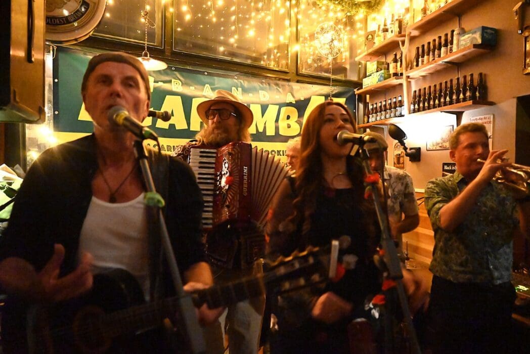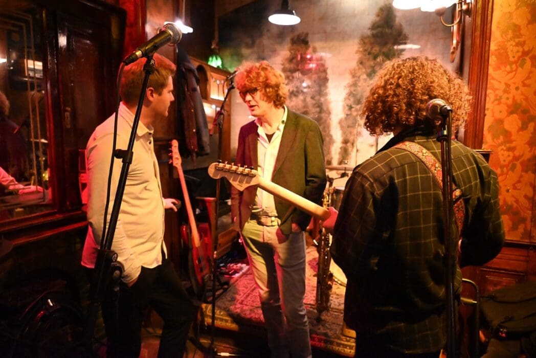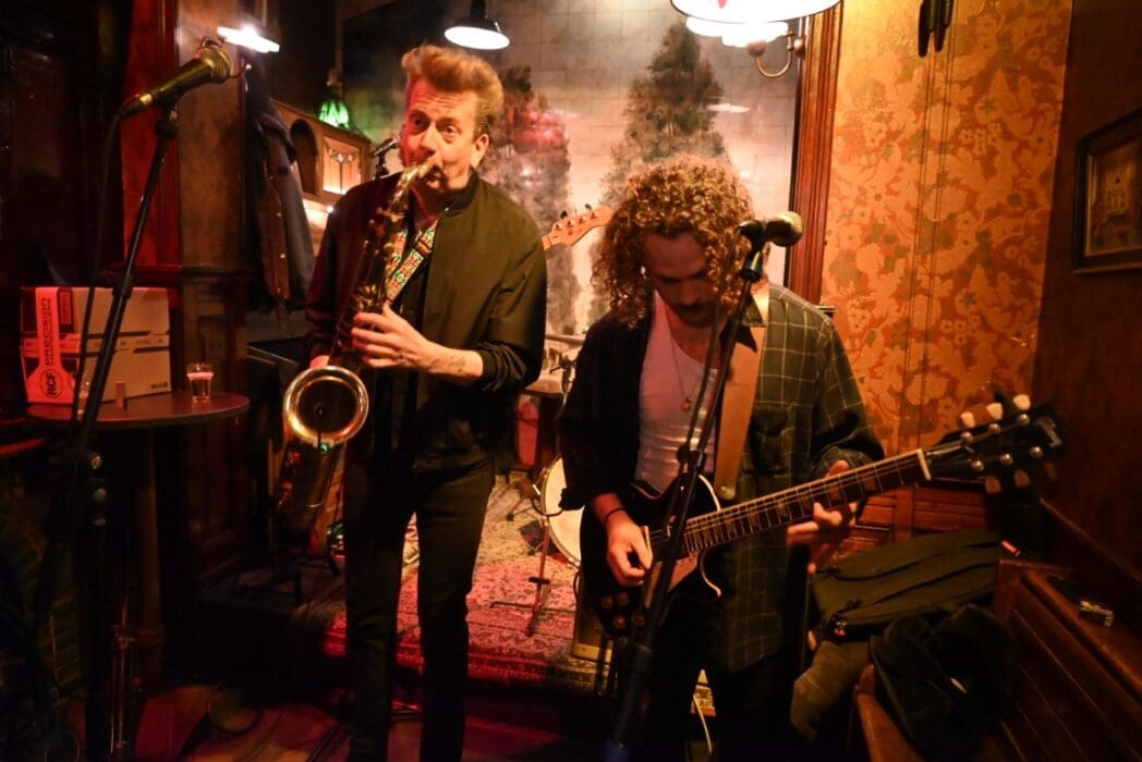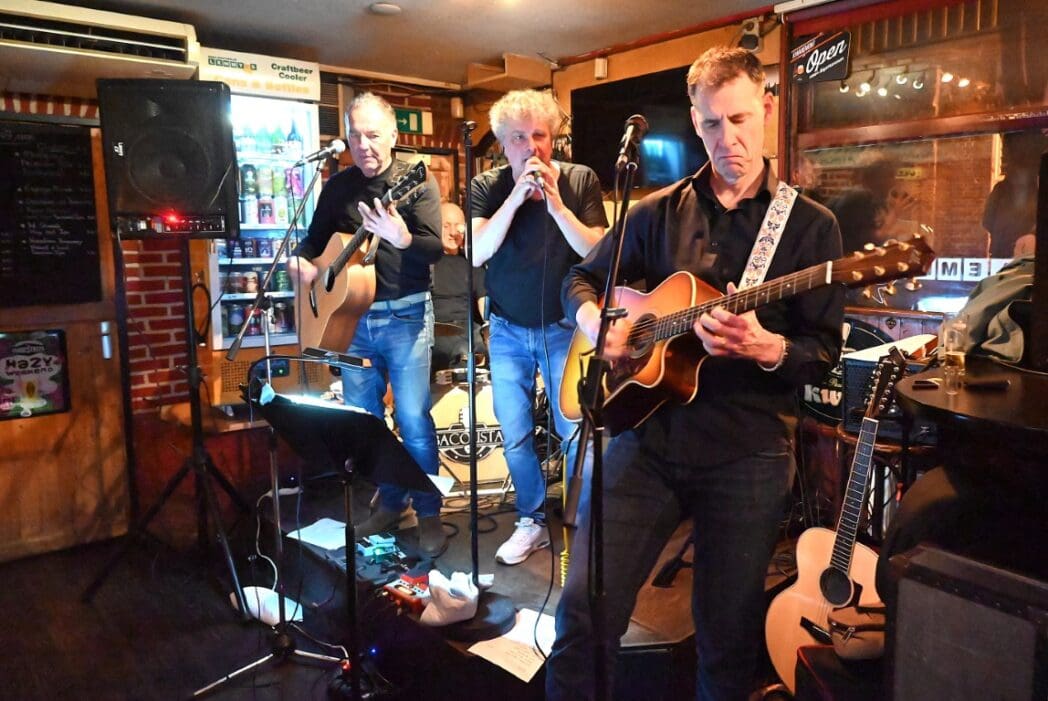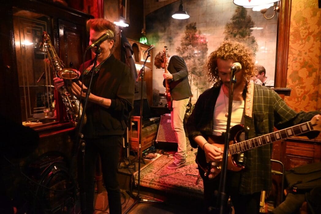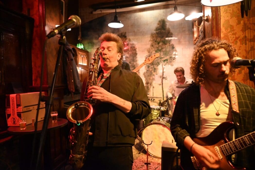 Lekker als drie kroegen bij elkaar liggen. Ik liep bij Grenare naar binnen bij de Cabbage Alley Band.