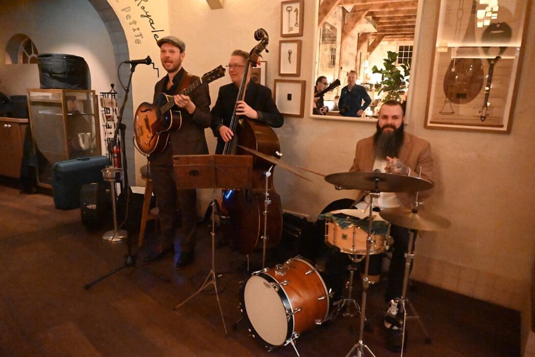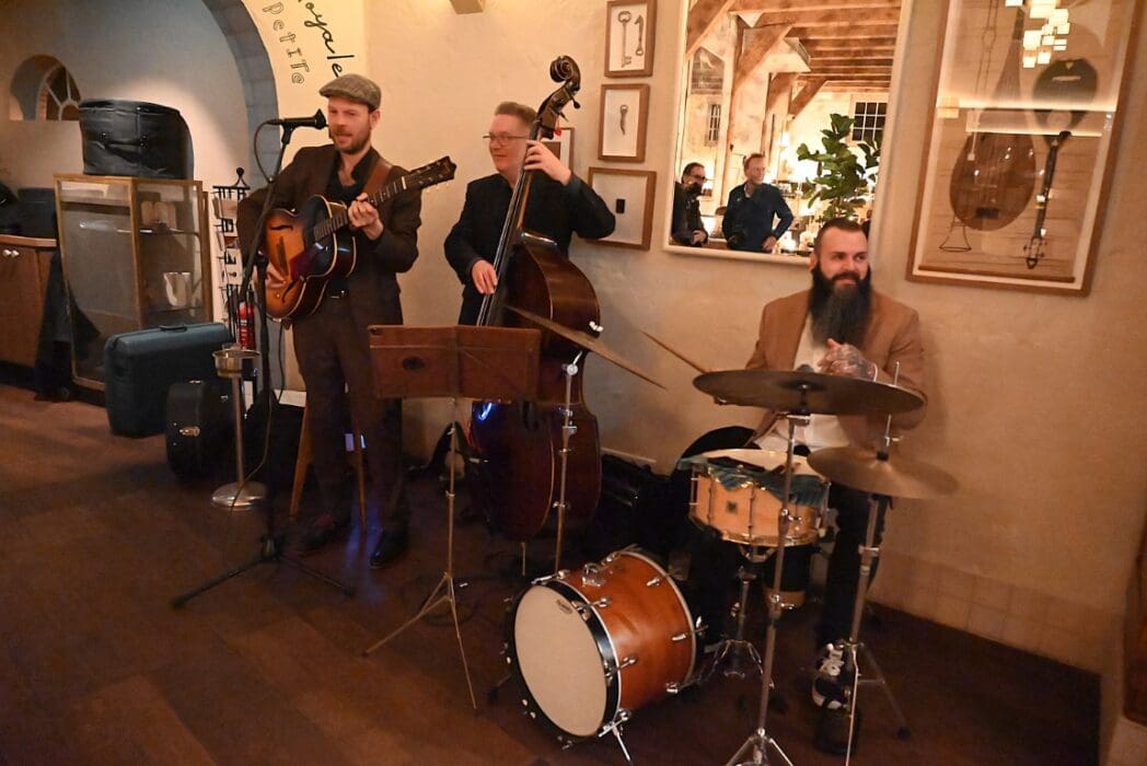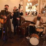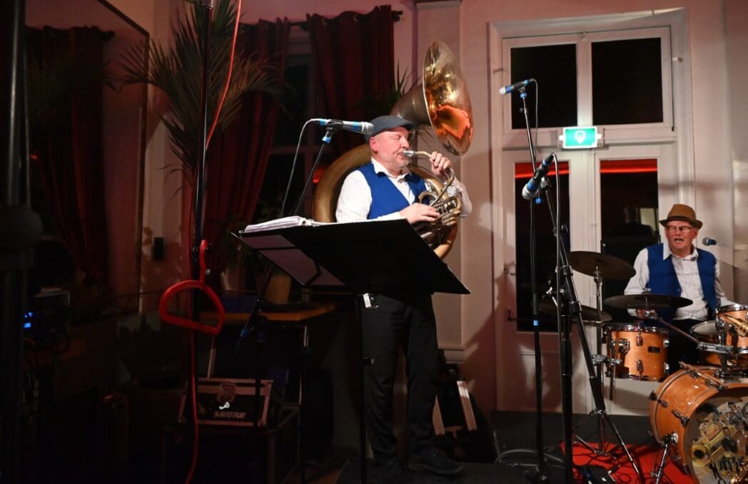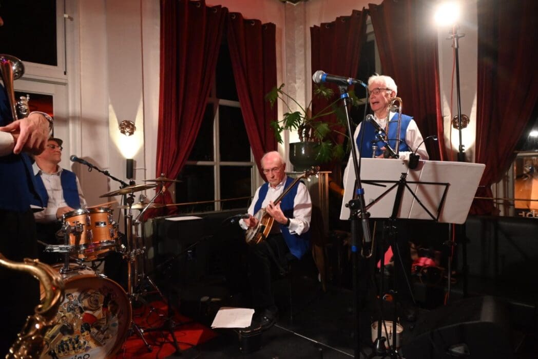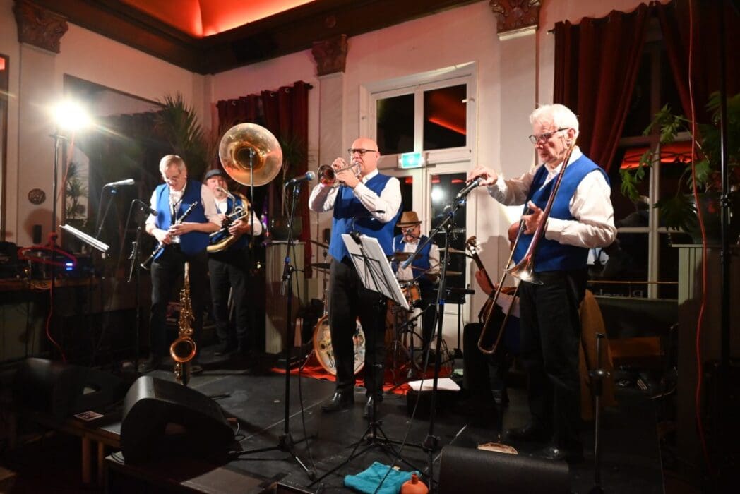 Op naar het volgende optreden, de Willie Ashman Original Jazzband in Grand Café de Burcht.