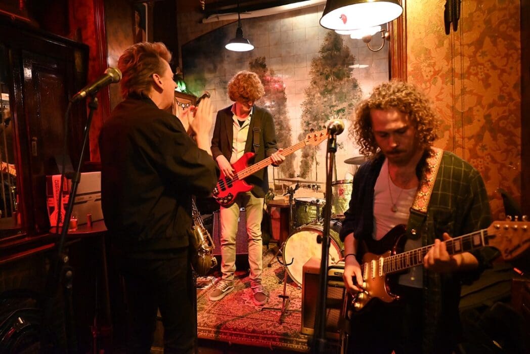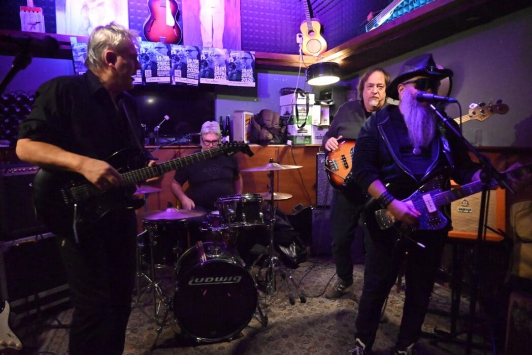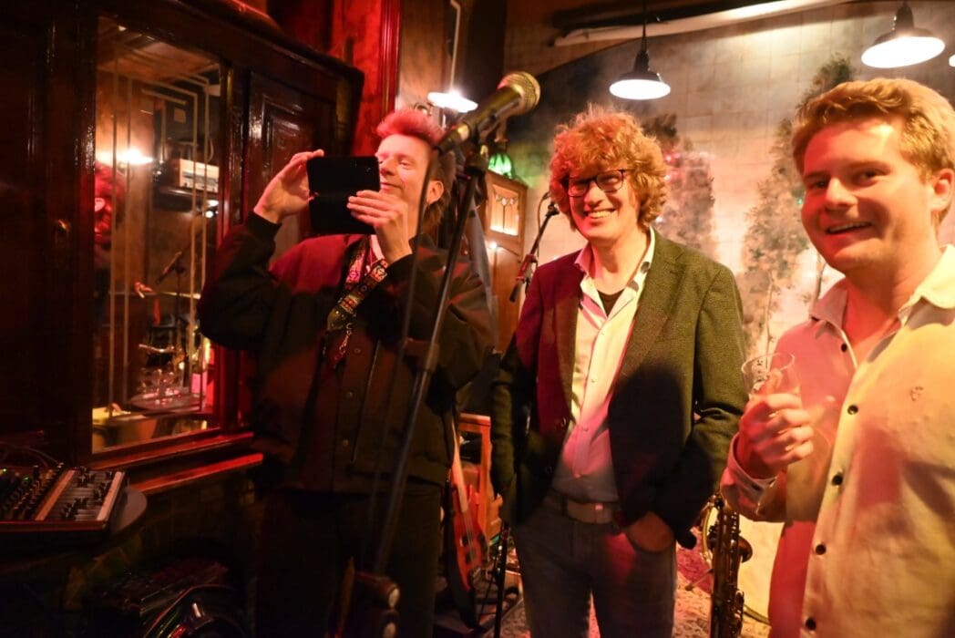 Ik heb geen filmpje, want de band hield net pauze toen ik binnen kwam, maar ze wilden wel even voor de foto poseren.