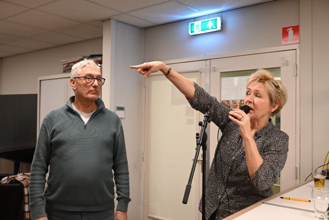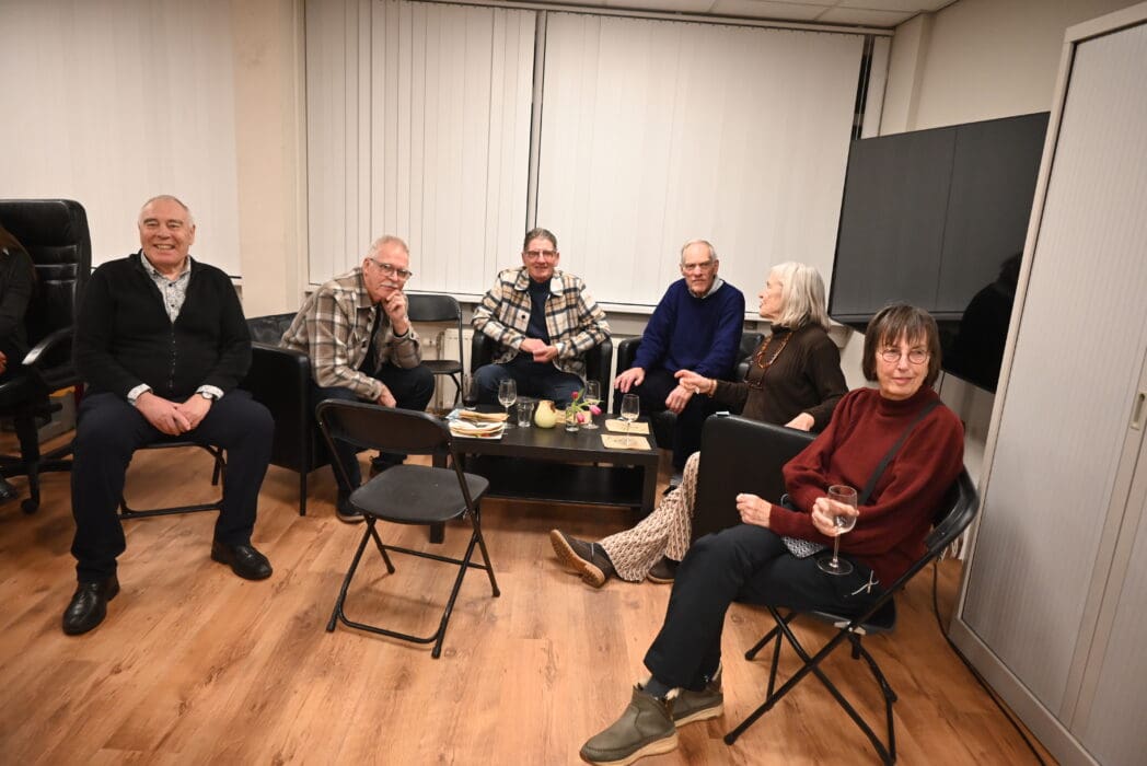Het werd even passen en meten, want de hele ruimte is gevuld met pilaren en probeer daar maar eens ongeveer honderd mensen zichtbaar tussen te persen.