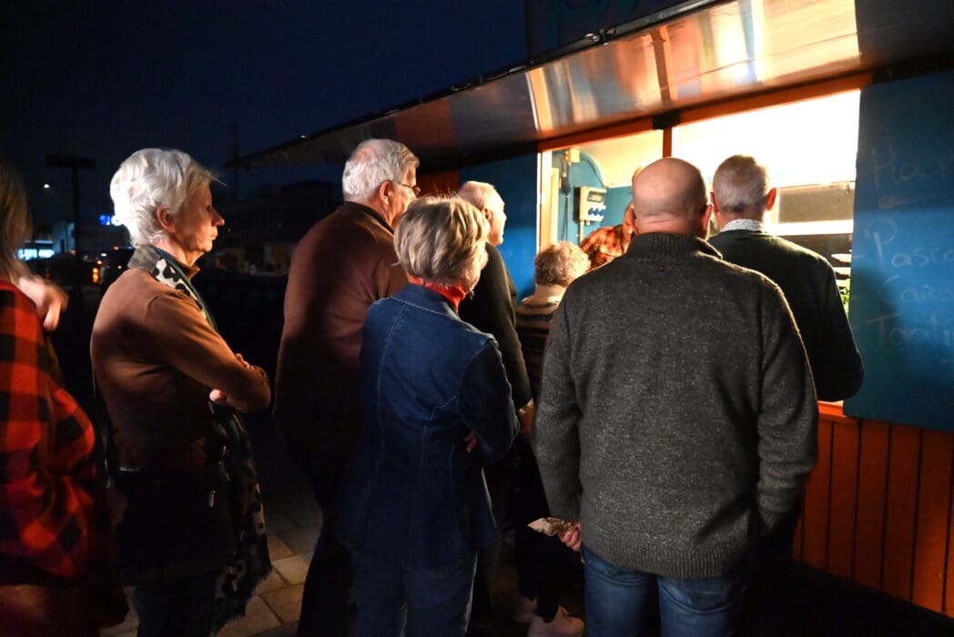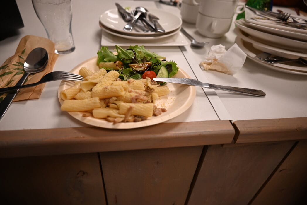 Van poseren krijg je trek, dus maar goed dat ondertussen het eten klaar stond in de cateringwagen.