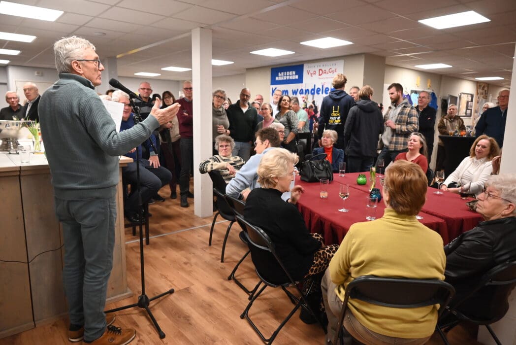 Marathon voorzitter Tjeerd praatte iedereen even bij over de laatste nieuwtjes zoals het verplaatsen van de start naar de Koninginnelaan.