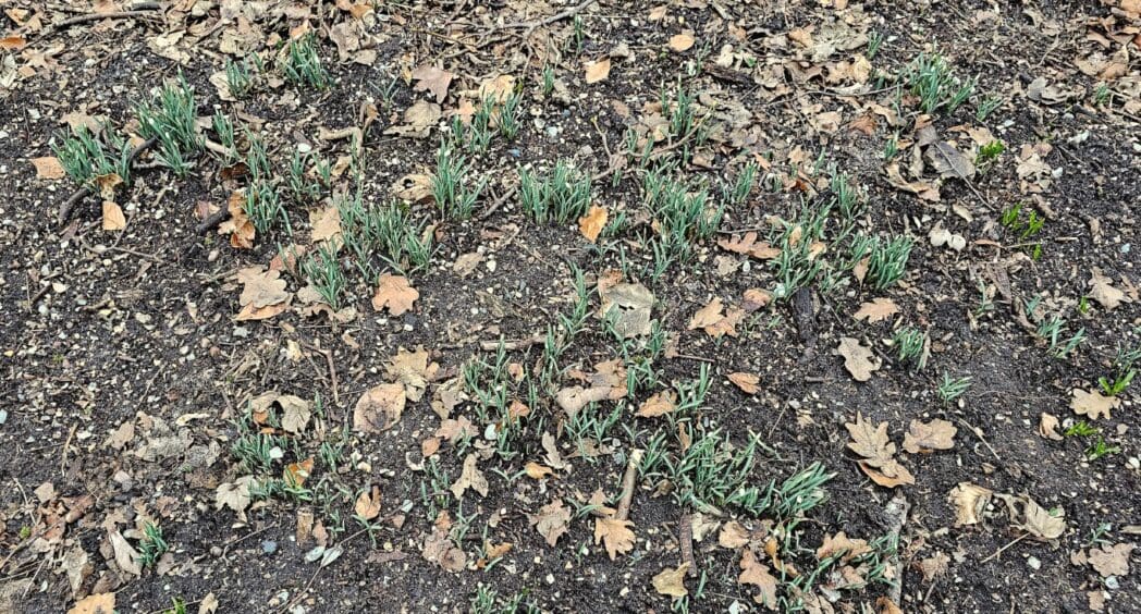 Verder bloeien ze nog niet in het park, maar het gaat wel snel. Vorige week zag je alleen nog groene sprietjes, nu schieten ze de grond uit en hebben hele kleine knopjes.