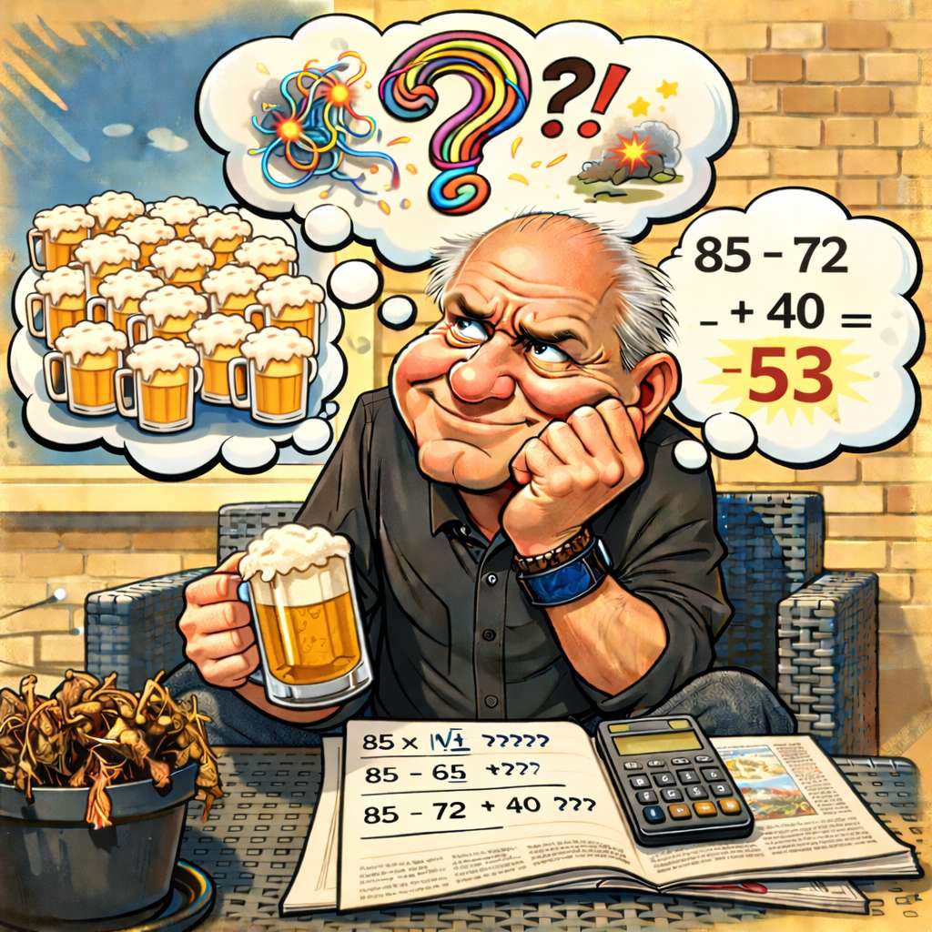 Ik las vanmorgen ergens onderstaand raadsel. De getallen zijn hetzelfde ik heb alleen, het plaatje een beetje aangepast. Reken even uit 85 glazen bier min je leeftijd plus 40 is je geboortejaar. Probeer het maar uit, het werkt echt.