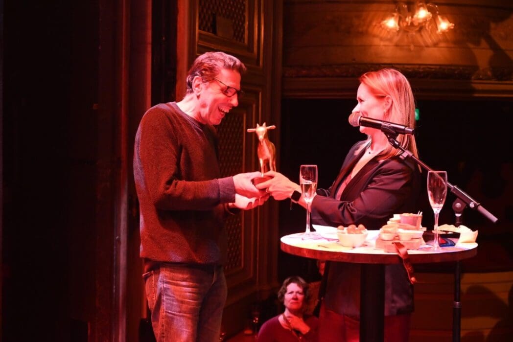 Toneelmeester Sjaak is onlangs met pensioen gegaan, maar werkte deze week voor het 41e jaar mee aan het festival. Als dank kreeg hij de (echt) eerste Gouden Geit.