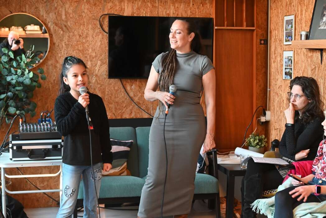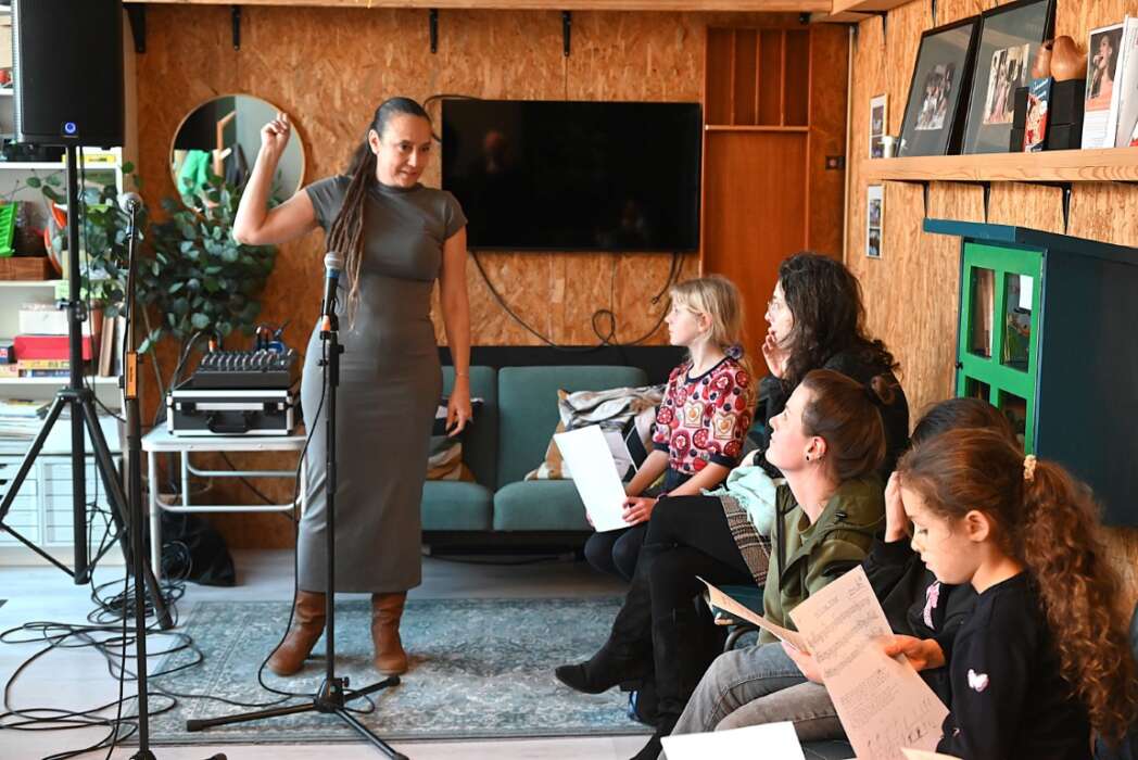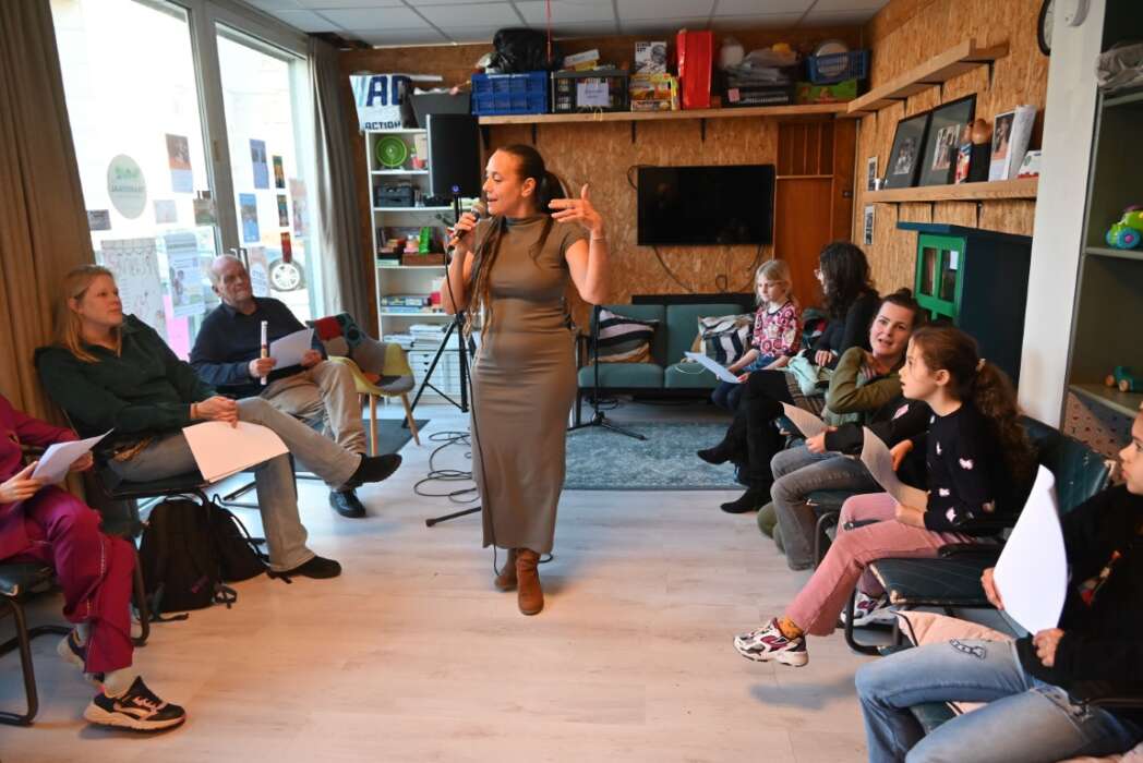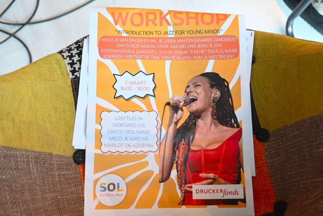 Deze week is de Duitse jazzzangeres Melanie Bong te gast in Leiden voor diverse optredens in de regio, waaronder dinsdag in de Qbus. Naast haar optredens verzorgt ze ook een paar leuke workshops voor zowel kinderen als 55plussers. Maandag zong ze met kinderen in de buurthuiskamer op de Morsweg.