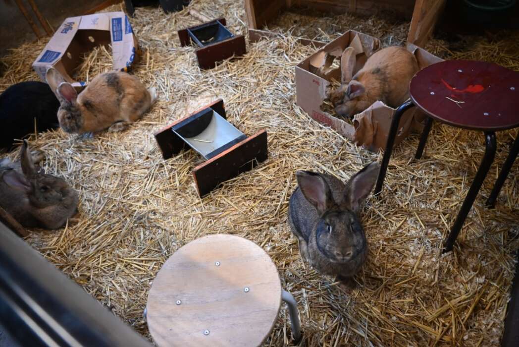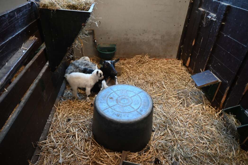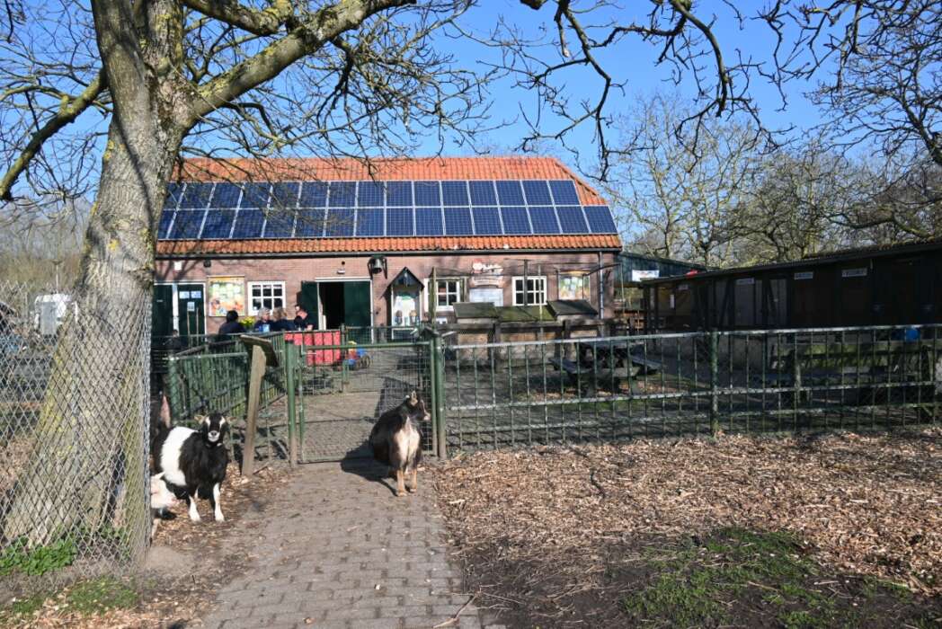 Mama geit bleef met haar kinderen liever nog even binnen.