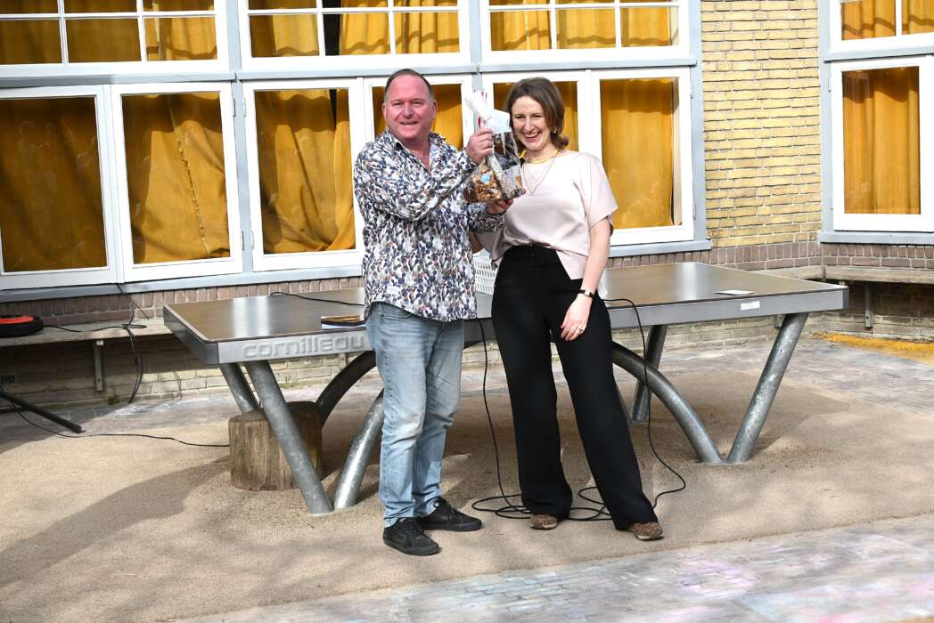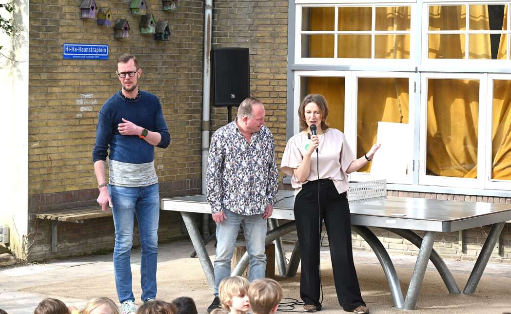 Sinds 2006 reikt D66 Leiden de prijs uit voor de beste conciërge van het jaar. Scholen kunnen zich aanmelden als ze vinden dat hun conciërge deze titel verdient. Dat deed ook dit jaar juf Sandra Ceulemans en haar leerlingen van de groep de Harlekijnen. Vrijdagmiddag werd hun conciërge verrast en totaal overrompeld. Er was Rinus Moerkens verteld dat er een prijs voor het groenste schoolplein uitgereikt ging worden en of hij het geluid in orde wilde maken. Terwijl directeur Brian Groot wethouder Wietske Veltman welkom heette zat de Rinus rustig in een hoekje toe te kijken.