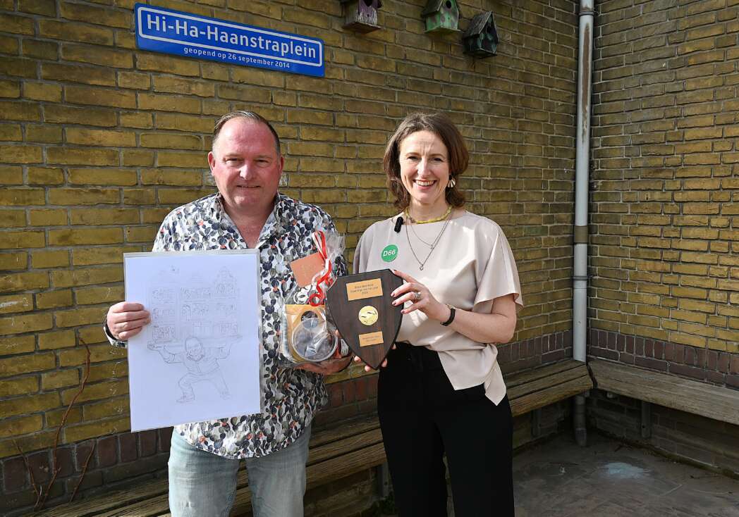 We hebben een tekening gehad vervolgde de wethouder en daar staat op waarom jij de conciërge van het jaar moet zijn.
