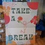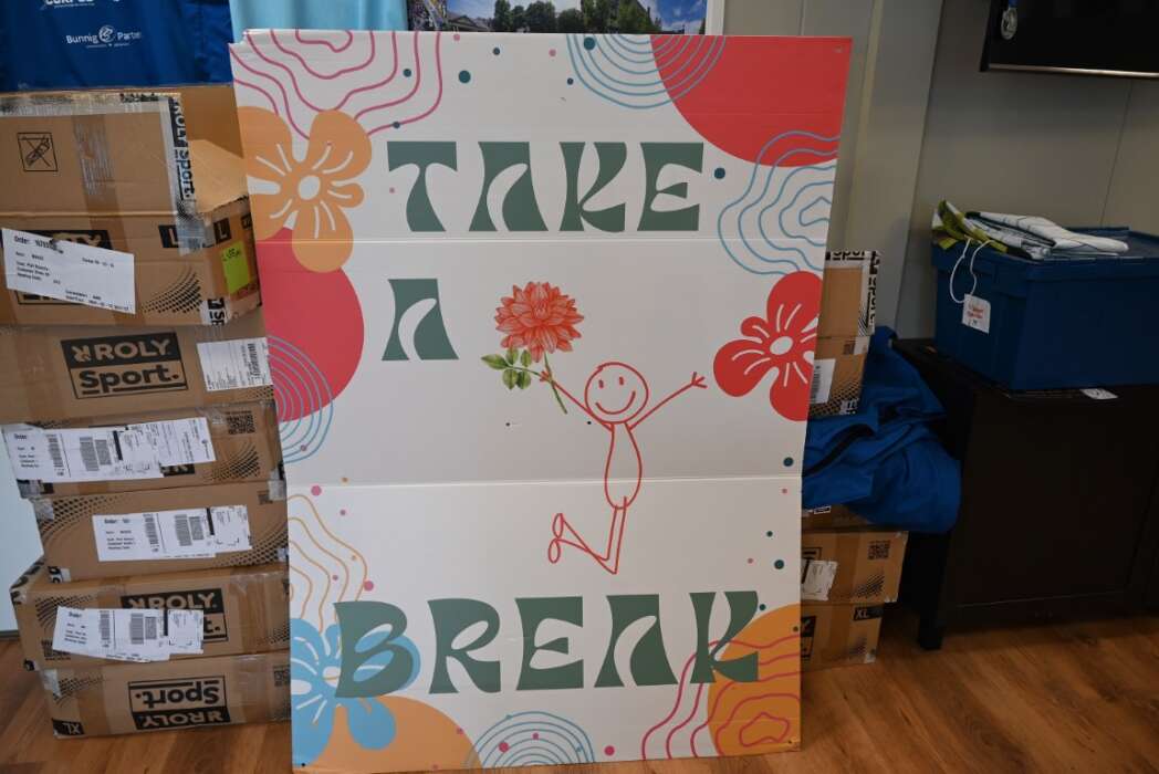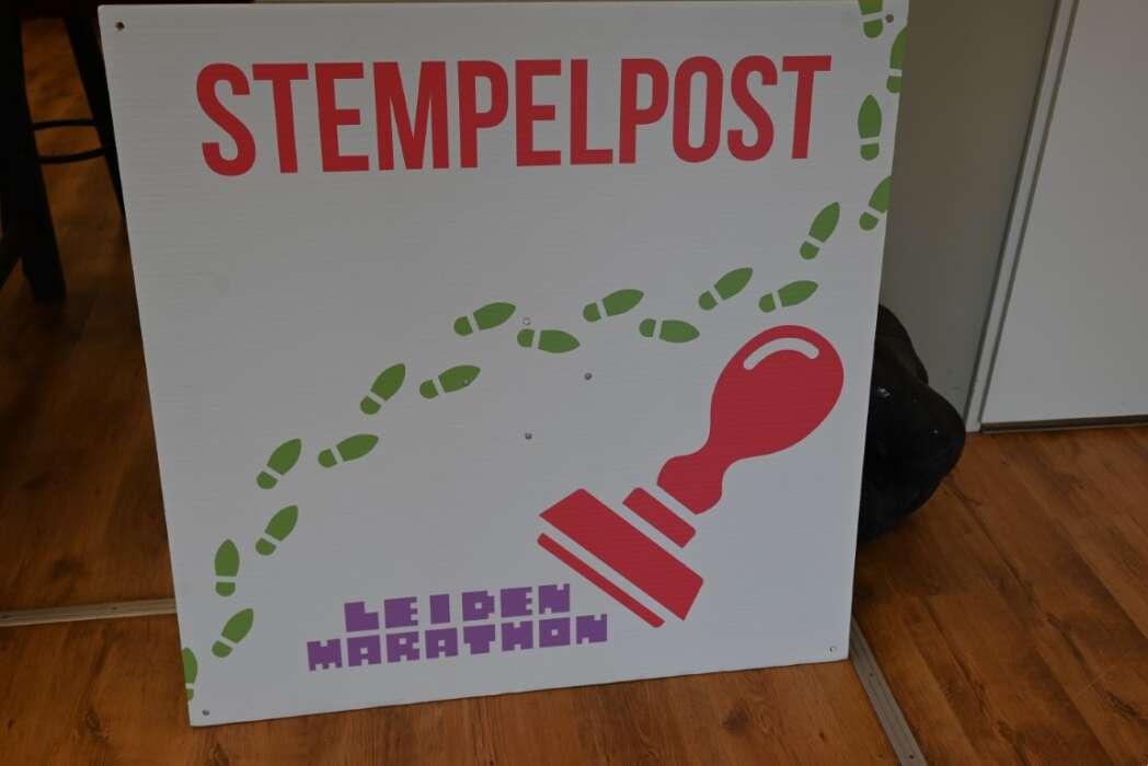 De dag voor de marathon is er de wandelmarathon, waarbij wandelaars hetzelfde parcours lopen als een dag later de hardlopers. Het bord stempelpost is uiteraard voor de wandelaars.