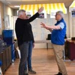 Voor een aantal vrijwilligers ook een mooi moment om even bij te kletsen.
