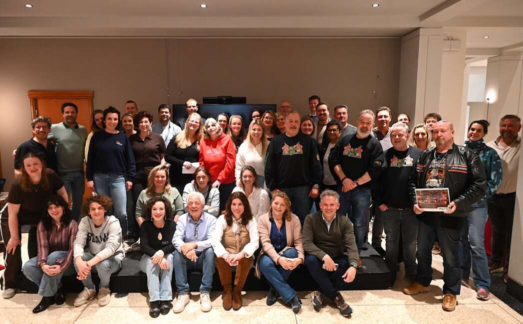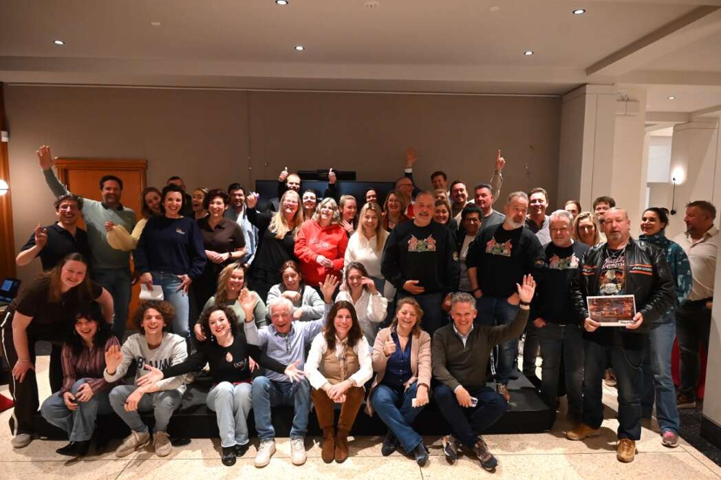 Op de voorste rij de grote concurrenten, maar ook vrienden, Henny de Vos en de Stamgasten.