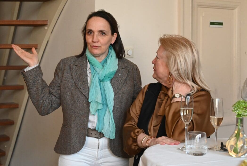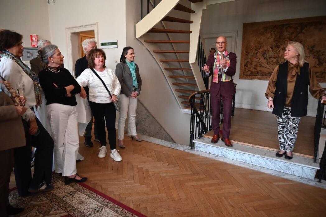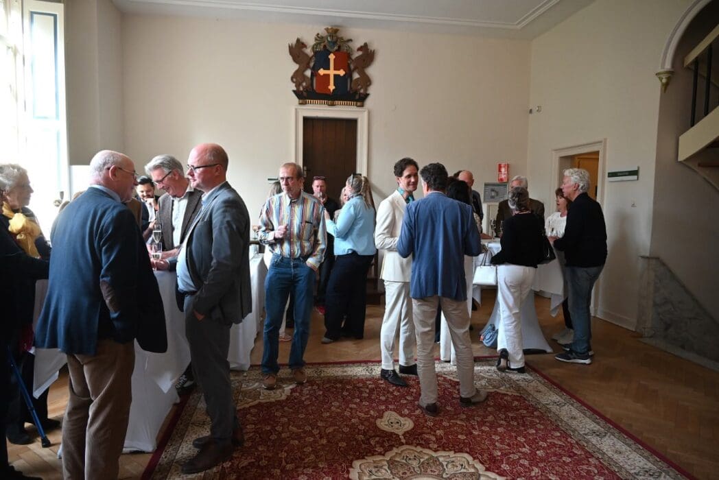 Emile vervolgde met een verhaal over een diner met expats in het kasteel en refereerde aan de aandacht die Marjolijn aan Boerhaave heeft geschonken. ‘Haar niet aflatende inzet om Boerhaave tot leven te wekken al was de medicus en botanicus en oud-inwoner van het kasteel, al in 1738 gaan hemelen. Via wandelingen, een kookboek van de hand van Wilfred Simons en een muurgedicht zullen we Herman Boerhaave nog langer heugen’. Marjolijn genoot van de toespraak, maar gezien de lengte ( dan had ze maar niet zoveel moeten doen 🙂 ) ging ze toch maar even een drankje erbij pakken.