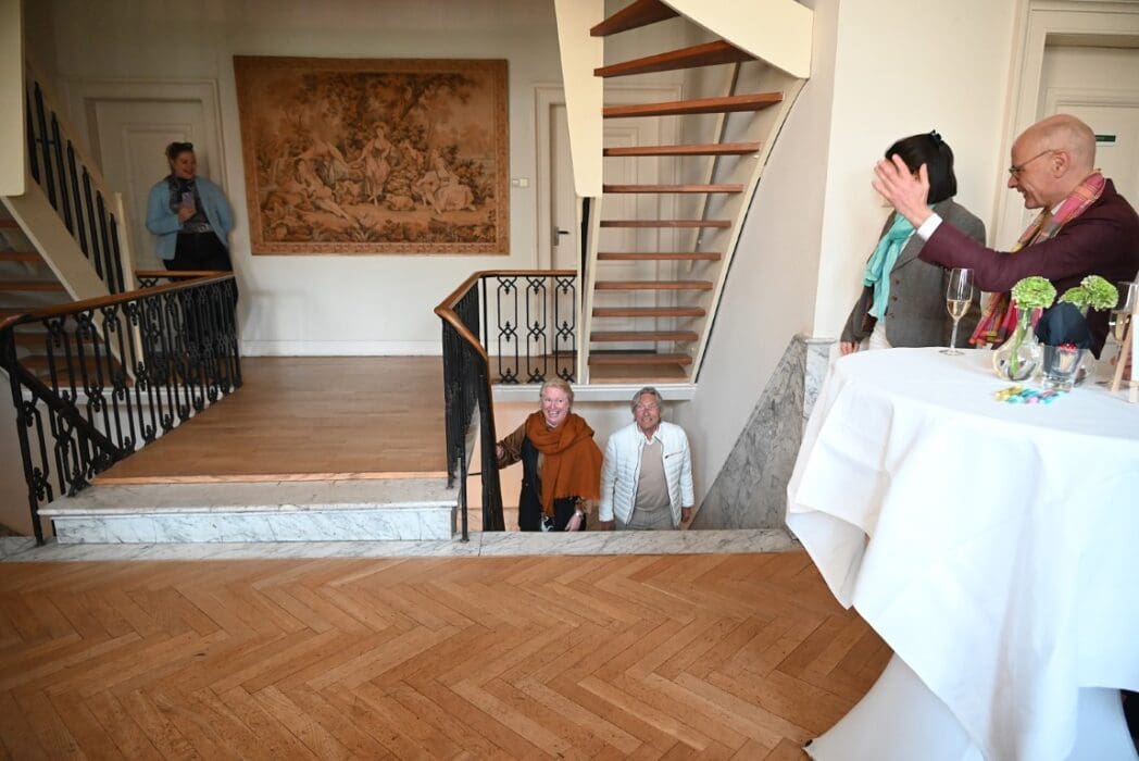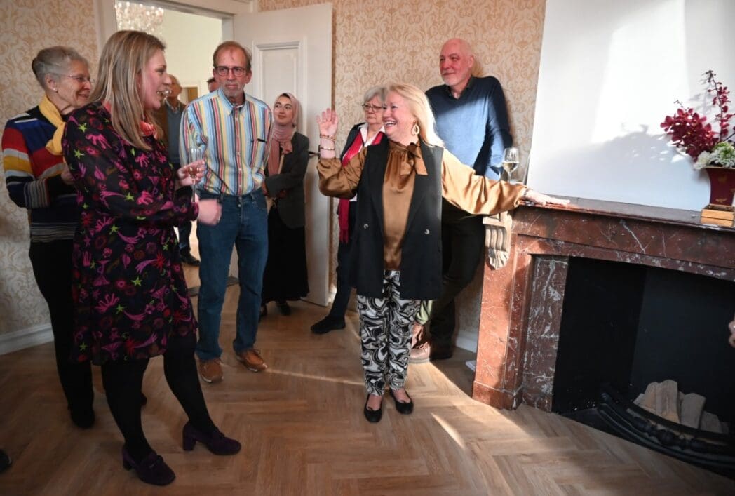 Marjolijn wist van niets. Ze dacht dat ze om vier uur een Dorpsmarketing vergadering in het Koetshuis had. Voorzitter Hans Ludo van Mierlo en Fleur Visser, bestuurslid en directeur Oud Poelgeest, stelden voor in het kasteel te vergaderen omdat het in het Koetshuis erg druk was.