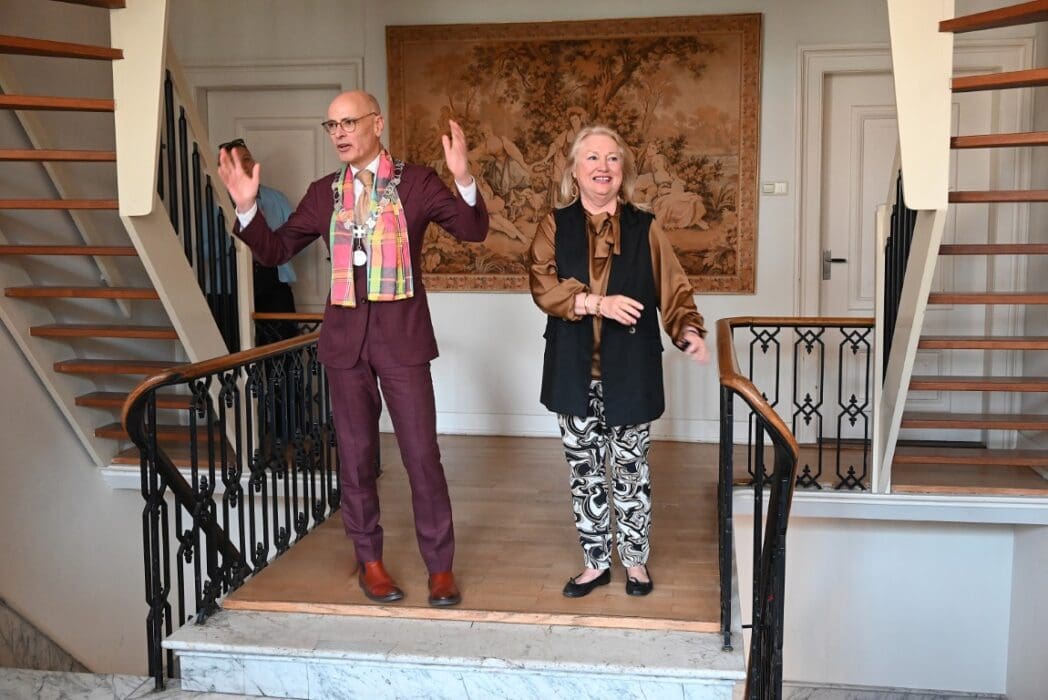 Dat in het zonnetje zetten werd ruimschoots gedaan door burgemeester Emile Jaensch, die het toch wel ondanks de goede vriendschap, officieel wilde houden en daarom zijn ambtsketen omhing.