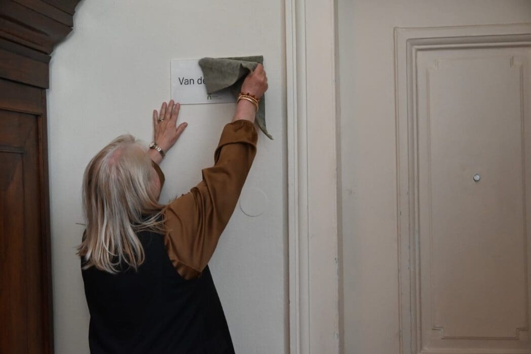 Fleur Visser, directeur Oud Poelgeest nam het woord over en Marjolijn mee naar een deur in de hal.