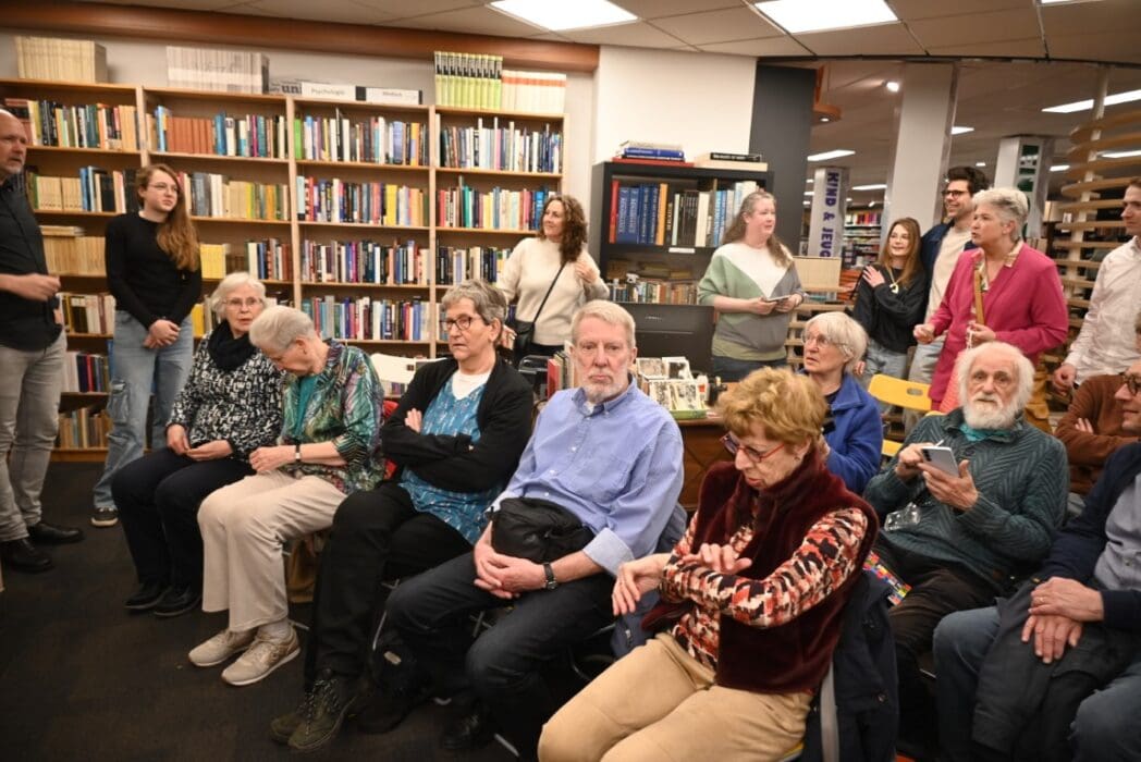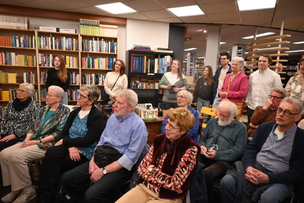 Het publiek luisterde aandachtig en geamuseerd naar de toespraak en de gedichten.