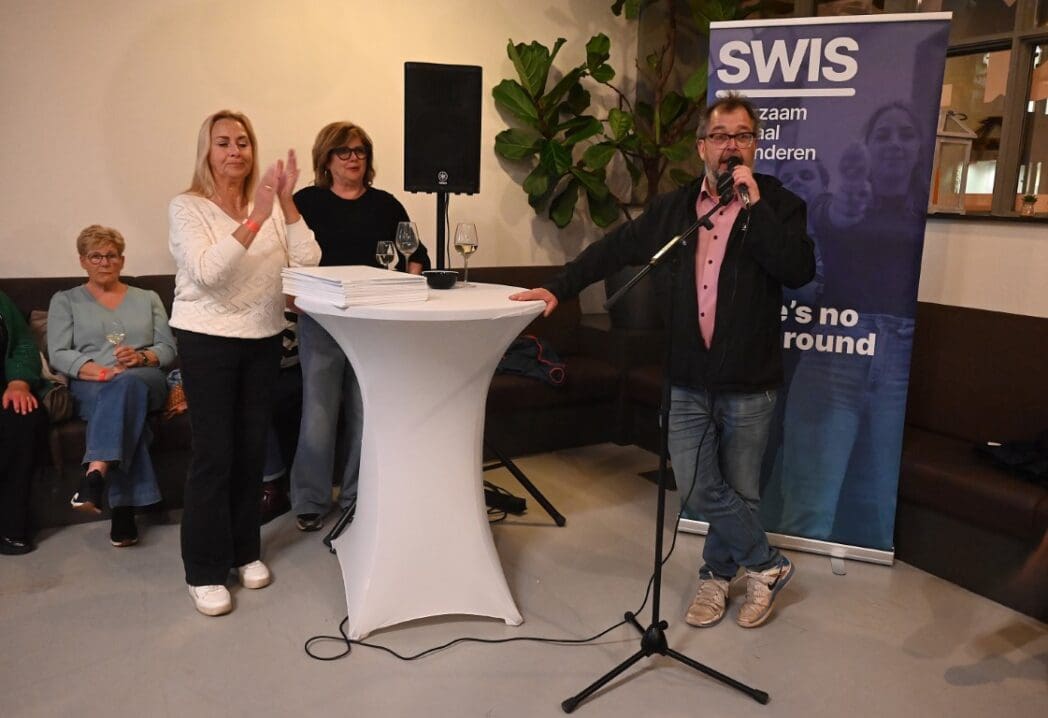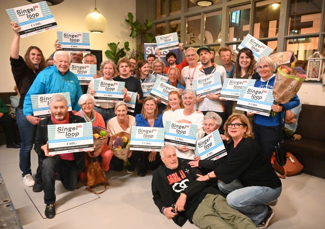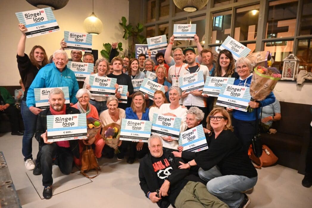 In Nieuwe Energie was de Swis afterparty waar de cheques uitgedeeld werden. Onderweg daar naartoe was het gezellig druk bij de Respons met lopers en publiek.