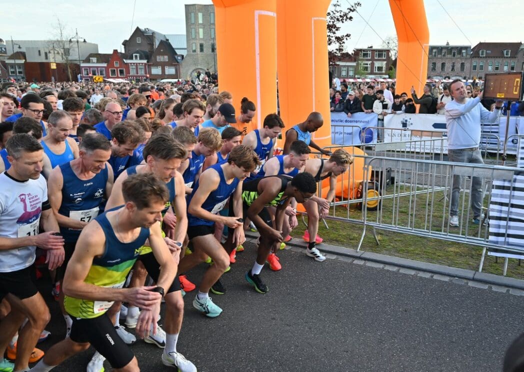 Het duurde ruim acht minuten voor alle lopers gestart waren.