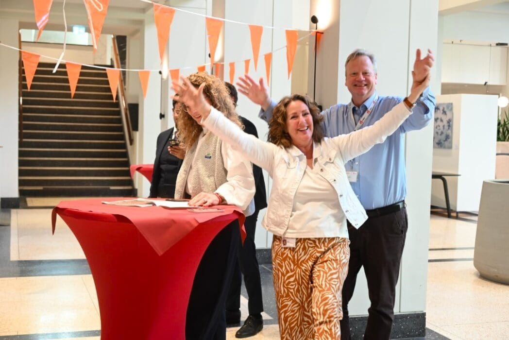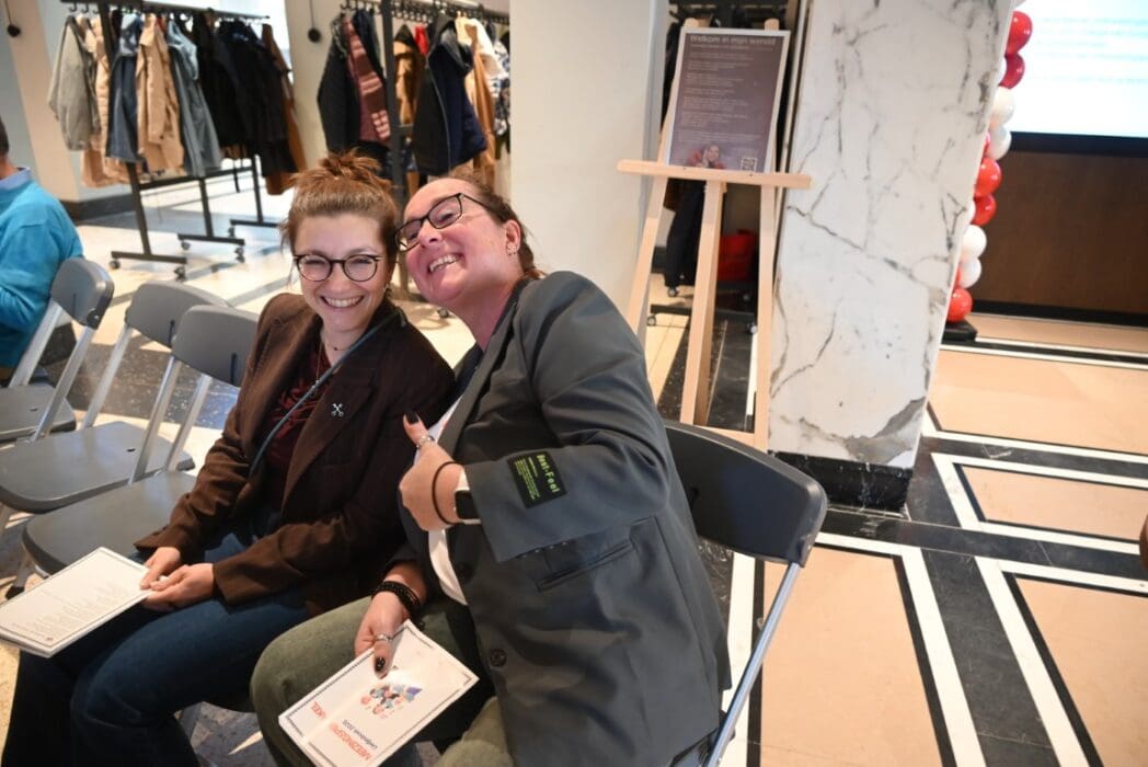 Wethouder Prescillia van Noort en assistente Cindy waren ook even naar beneden gekomen om mee te zingen.