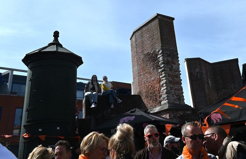 Het was druk op het plein, maar sommige zaten hoog en droog.