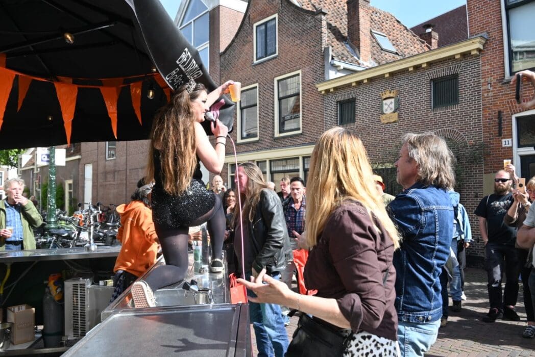 Ik ga al ongeveer een jaar of tien op Koningsdag op stap met de Oranje Vereniging en de burgemeester. Dat is hartstikke leuk en gezellig en je wordt in alle buurten en festiviteiten waar we komen als een soort vorst ontvangen. Maaaaaaar….. het is wel feest, maar geen rock & roll. Eerlijk gezegd begin ik de rest van het feest in de stad bij de kroegen en op de pleinen wel een beetje te missen. Gelukkig viel de Koningsnacht op zondag en begon bij het Praethuys al om 2 uur, dus vanmiddag kon ik even mijn eigen ding doen en lekker uit mijn dak gaan.